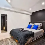 Deauville Luxury Blue Loft - Sauna And Inside Pool ferielejlighed ligger 1 km fra Deauvilles internationale center og tilbyder indkvartering med WiFi i hele ejendommen. Der er også en elkedel, kaffemaskiner/tekedler og et køleskab i et fuldt udstyret køkken .